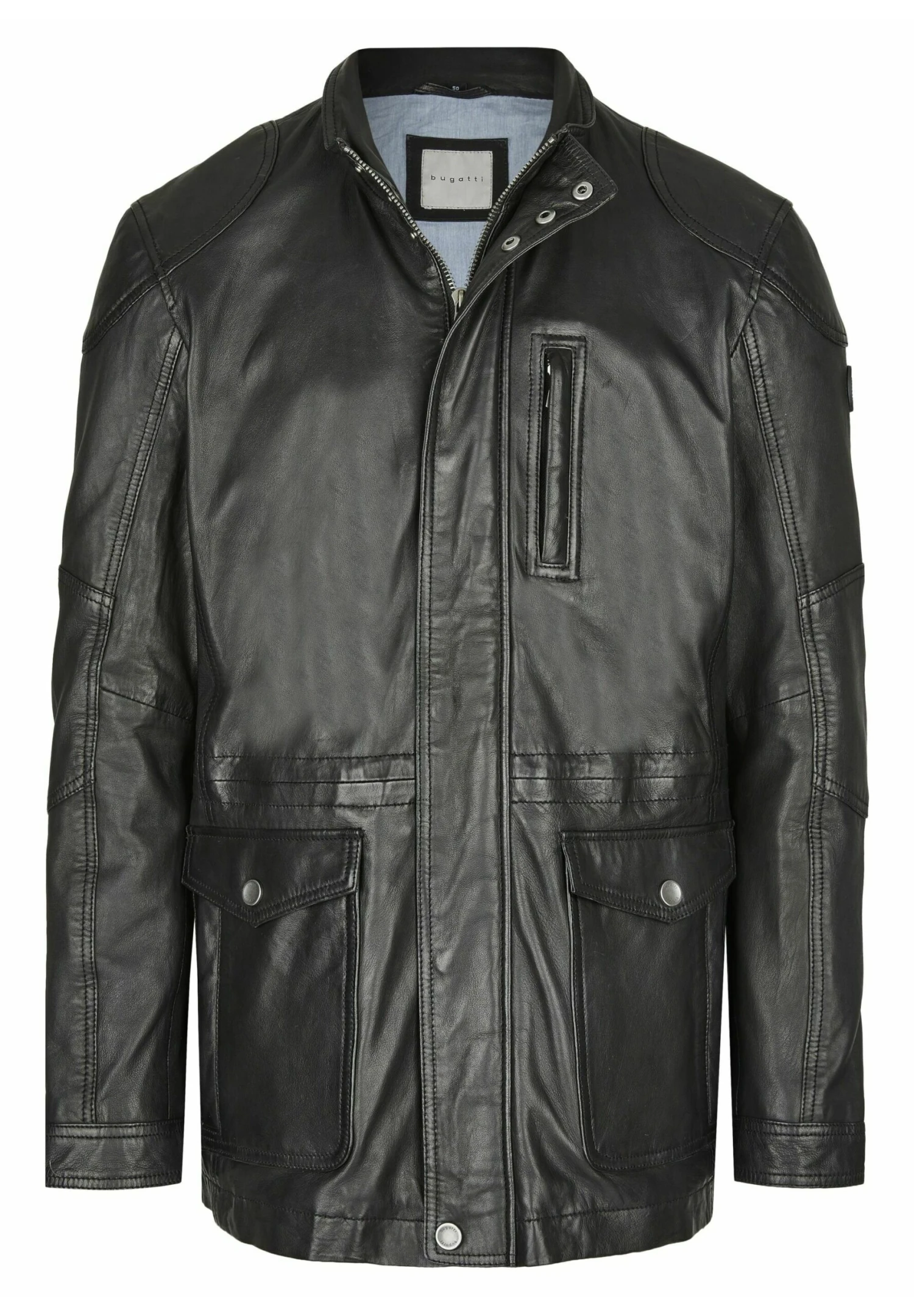 Bugatti Mit Abdeckleiste Und Stehkragen – Leren Jas – Schwarz